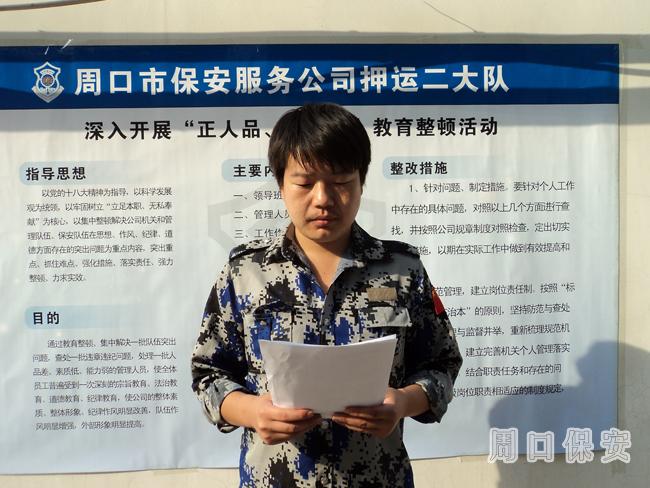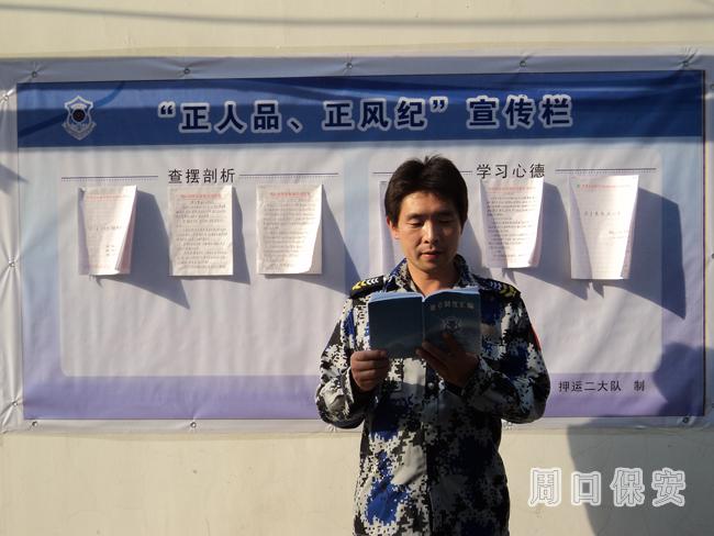 為較好地貫徹落實公司“正人品、正風(fēng)紀(jì)”教育整頓活動,押運二大隊及時召開全體守押隊員,組織學(xué)習(xí)公司教育整頓方案及計劃安排,并提出教育整頓的目的及有關(guān)要求。