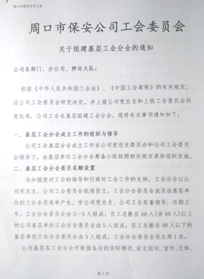 關(guān)于組建基層工行分會(huì)的通知