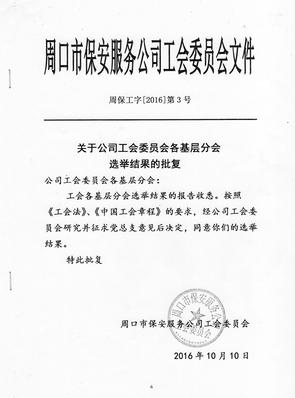 關(guān)于公司工會委員會各基層分會選舉結(jié)果的批復(fù)