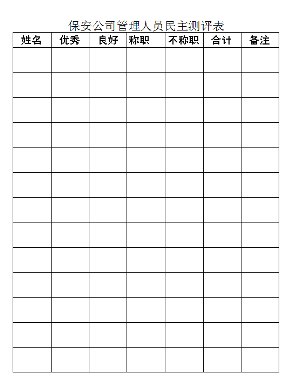 2.保安公司管理人員考核民主測評表