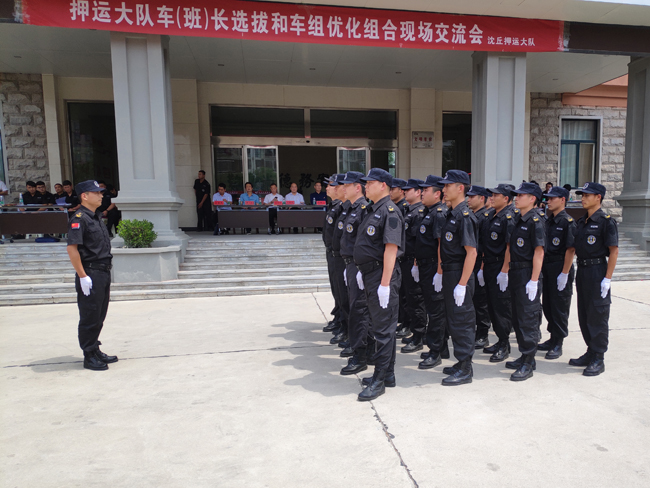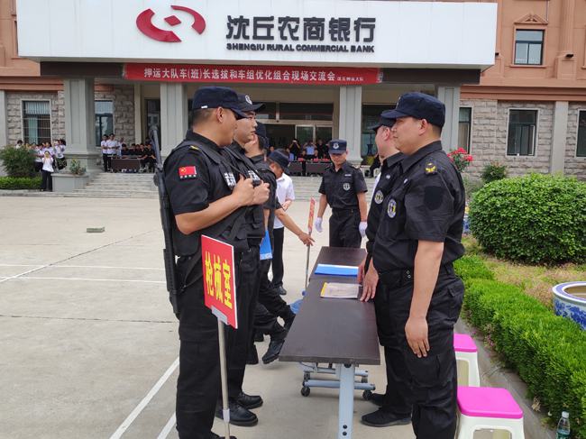 為慶祝建國70周年,確保守押工作安全穩(wěn)定,為客戶單位提供文明規(guī)范、安全高效的服務(wù),為周口經(jīng)濟(jì)社會發(fā)展再立新功。2019年6月1日上午10時(shí)30分,周口市新時(shí)代保安服務(wù)有限責(zé)任公司在押運(yùn)沈丘大隊(duì)成功舉辦了車(班)長及車(班)組優(yōu)化組合現(xiàn)場經(jīng)驗(yàn)交流會。保安公司總經(jīng)理鄭明山、副總經(jīng)理?xiàng)顣堋⒗钋鍏⒓訒h,沈丘縣公安局治安大隊(duì)副大隊(duì)長武藝、農(nóng)商行監(jiān)事長王保林、保衛(wèi)科長李東杰、農(nóng)行保衛(wèi)科長李杰蒞會觀摩指導(dǎo)。