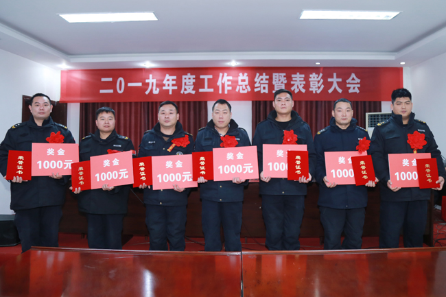 新年伊始,萬象更新。元月16日上午,周口市新時(shí)代保安服務(wù)有限責(zé)任公司隆重召開了2019年度工作總結(jié)暨表彰大會(huì)。在周班子成員,機(jī)關(guān)全體,押運(yùn)、人防中心各大隊(duì)長(zhǎng),技防中心、培訓(xùn)學(xué)校、子公司、縣分公司負(fù)責(zé)人和先進(jìn)代表100余人參加了會(huì)議。會(huì)議由公司黨總支委員、董事會(huì)董事侯長(zhǎng)建主持。會(huì)上,公司黨總支書記、董事長(zhǎng)范志剛作了題為《保安全 促發(fā)展 重項(xiàng)目 增效益》工作總結(jié)報(bào)告,公司副總經(jīng)理耿學(xué)爭(zhēng)宣讀了《關(guān)于表彰2019年度先進(jìn)集體和先進(jìn)個(gè)人的決定》。會(huì)議對(duì)6個(gè)先進(jìn)集體和86名先進(jìn)個(gè)人進(jìn)行了表彰,頒發(fā)了獎(jiǎng)牌、榮譽(yù)證書和獎(jiǎng)金。