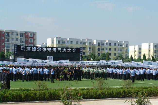 周口市機關保衛(wèi)科科長、保安公司總經(jīng)理韓國華、保安公司黨總支書記鄭明山、保安公司財務經(jīng)理王洪章、保安公司押運經(jīng)理秦平柱、保安公司人防經(jīng)理郭偉等領導趕到現(xiàn)場,參加悼念大會。保安公司200名保安隊員和特勤隊員,排列著整齊的隊伍,懷著無比沉痛的心情,共同為追逃英雄張宏濤送上最后一程。