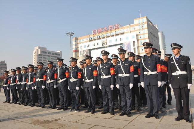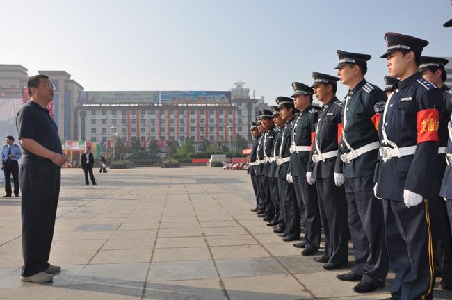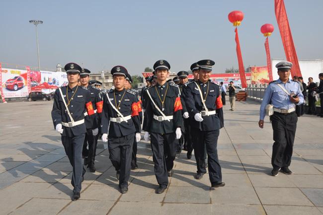 為確保國慶假日期間我市道路平安暢通,加強我市城區(qū)交通環(huán)境整治,按照市公安局領(lǐng)導指示精神,保安公司抽調(diào)68名交通協(xié)管員,配合市公安局交警部門維護我市城區(qū)交通秩序。9月30日上午,保安交通協(xié)管員上崗儀式在五一廣場舉行,市公安局副局長周琦、市交警支隊副支隊長程廣星、保安公司總經(jīng)理韓國華、保安公司人防經(jīng)理蔣子華等領(lǐng)導出席了儀式。