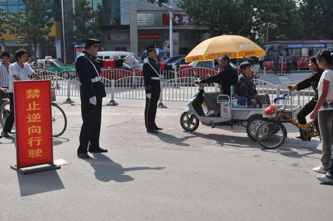 市公安局副局長周琦傳達了我市開展中心城區(qū)環(huán)境綜合整治工作的目的和意義,并要求參戰(zhàn)人員要以此次整治活動為契機,進一步更新思想觀念、規(guī)范執(zhí)法行為;練業(yè)務(wù)、強素質(zhì)、樹形象,要發(fā)揚頑強拼搏、連續(xù)奮戰(zhàn)的精神,把此項工作深入開展下去。交警支隊副支隊長程廣星對執(zhí)勤工作進行了部署,對保安協(xié)管員在此項活動中的具體工作進行了安排,并且針對車輛逆行、電動車進入快車道等違章情況的處理方法進行了講解。保安公司總經(jīng)理韓國華要求參戰(zhàn)保安協(xié)管員要按照統(tǒng)一指揮要求,恪盡職守,盡職盡責,配合交警部門圓滿完成此次城區(qū)交通環(huán)境整治工作。