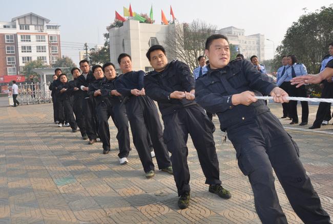 為了慶祝祖國母親60歲生日,10月1日上午,保安公司派出代表隊(duì)參加市局舉辦的拔河比賽。賽前,公司押運(yùn)經(jīng)理秦平柱對(duì)參賽隊(duì)員進(jìn)行了賽前動(dòng)員,要求大家要以良好的精神狀態(tài)和積極的心態(tài)參加此次比賽。