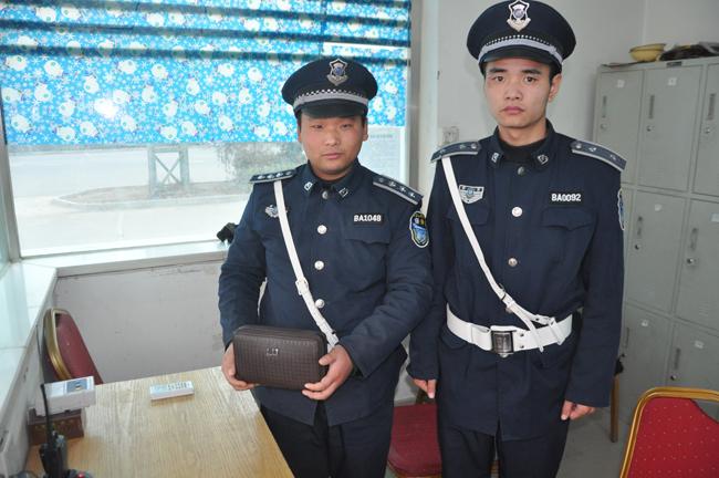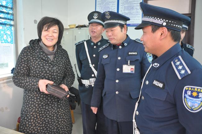 原來,12月28號晚,在越秀酒店執(zhí)勤的保安隊員文帥、呂明明向往常一樣巡邏執(zhí)勤,忽然發(fā)現(xiàn)一個皮包,“就餐的客人都走了,是不是有人落下的”想到這里,保安員文帥及時和大隊長張貝連聯(lián)系,并同執(zhí)勤單位保衛(wèi)部門取得聯(lián)系,經(jīng)過共同協(xié)商,大家打開皮包,找到了失主的聯(lián)系方式,并及時與失主取得聯(lián)系。接到保安隊員的電話,在家焦急萬分的失主毛先生長出了一口氣,對執(zhí)勤保安表達了自己的感激之情,并回憶說是自己不慎將皮包落下了,夜晚回到家后,才發(fā)現(xiàn)皮包不見了,由于夜色已經(jīng)太晚,毛先生請求保安員暫時保管皮包。第二天早上,毛生生的妻子來到越秀酒店保安值班室,向認真負責(zé)的保安隊員表達了感謝,并當(dāng)眾檢查了皮包內(nèi)的現(xiàn)金、銀行卡、身份證、票據(jù)等物品,當(dāng)看到一切完好無損時,她向保安隊員表達了深深的感激之情,并向保安公司領(lǐng)導(dǎo)和保安大隊長表達了敬意和感謝!