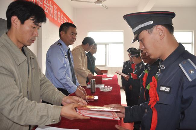 為總結(jié)經(jīng)驗(yàn),表彰先進(jìn),保安公司于2010年5月15日上午9點(diǎn)30分在公司四樓會(huì)議室召開“淮陽太昊陵朝祖會(huì)執(zhí)勤總結(jié)表彰”大會(huì)。公司黨總支書記鄭明山、人防經(jīng)理蔣子華押運(yùn)經(jīng)理秦平柱、財(cái)務(wù)經(jīng)理王洪章、人防副經(jīng)理耿學(xué)爭(zhēng)等領(lǐng)導(dǎo)出席了表彰大會(huì),公司機(jī)關(guān)工作人員和各分公司及公司押運(yùn)、人防保安員100余人參加了此次表彰大會(huì),會(huì)議由押運(yùn)經(jīng)理秦平柱主持召開。
