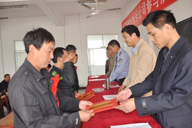 公司財(cái)務(wù)經(jīng)理王洪章宣讀了《關(guān)于表彰先進(jìn)集體和先進(jìn)個(gè)人的決定》,對(duì)在淮陽太昊陵朝祖會(huì)執(zhí)勤表現(xiàn)出色的鄲城分公司、人防四大隊(duì)2個(gè)先進(jìn)集體和朱艷霞、婁明等10名先進(jìn)個(gè)人進(jìn)行了表彰,并頒發(fā)了榮譽(yù)證書。