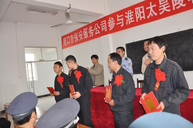 表彰大會(huì)上,人防經(jīng)理蔣子華首先對(duì)淮陽太昊陵朝祖會(huì)執(zhí)勤工作做了回顧和總結(jié),他指出:這次廟會(huì)工作,指揮部認(rèn)真貫徹了總經(jīng)理韓國(guó)華的指示精神,早計(jì)劃、早部署。在執(zhí)勤活動(dòng)中,嚴(yán)格管理、科學(xué)布崗,在后勤管理上,精打細(xì)算、物盡其用,并高標(biāo)準(zhǔn)的完成了公司交付的接待任務(wù)。這次大型活動(dòng),在隊(duì)伍管理上安全無事故,充分發(fā)揮了保安職責(zé),得到了淮陽縣委及太昊陵管理處等領(lǐng)導(dǎo)的充分肯定和一致贊許,樹立了周口保安形象。