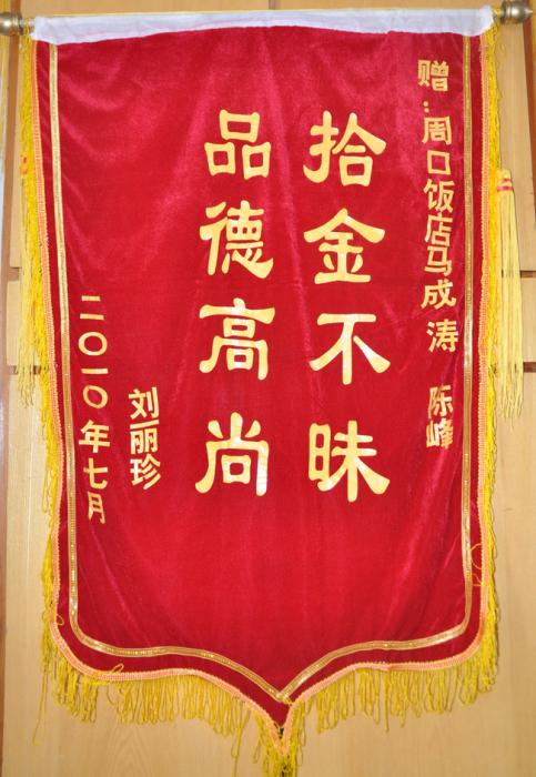 7月1日,人防一大隊保安隊員馬成濤、陳峰在周口飯店3號樓向往常一樣執(zhí)行巡邏時,發(fā)現大廳沙發(fā)上有一個白色提包,此時,保安員馬成濤首先撿起丟失的白色提包,向吧臺工作人員詢問,竟然沒人知道提包的下落,馬成濤、陳峰隨即與周口飯店主管經理取得聯系,并講述了事情的經過,兩人把包交給了主管經理,一個小時后,一名大學生名叫李麗珍的失主,前來尋找,在主管經理的核實下(包內有現金800元,大學生畢業(yè)證、身份證等證件),把包交還了失主,當失主找回證件時,激動地說:“你們周口保安是好樣的,真是太謝謝你們了,,,,,”下午,李女士向公司送來了一面刻有拾金不昧、品德高尚的錦旗以表感激之情。