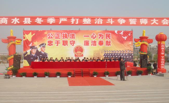 2010年10月29日上午,商水縣陽城公園里彩球飄揚,縣冬季嚴打整治斗爭誓師大會在這里隆重舉行。周口市市委常委、政法委書記朱家臣,周口市市長助理、公安局長姚天民,商水縣縣委書記劉政,商水縣副縣長、公安局長羅海龍、商水縣檢察院檢察長閆永、商水縣法院院長楊磊,周口市保安公司黨總支書記鄭明山等領導出席大會現(xiàn)場。大會由縣委常委、縣委副書記涂才民主持。
