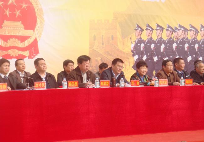 最后,市委常委、政法委書記朱家臣代表市委、市政府作了重要講話。他指出,商水縣委、縣政府高度重視平安建設,充分顯示了商水縣黨委政府有決心、有信心、有能力把平安建設工作做好,要求縣公、檢、法、司等部門要形成合力,確保嚴打整治取得成效,為全縣百萬人民群眾創(chuàng)造一個安居樂業(yè)的治安環(huán)境,為商水經濟又好又快發(fā)展做出應有的貢獻。