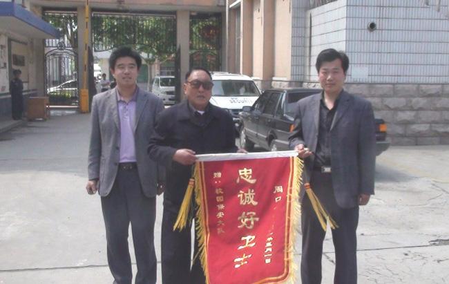 5月11日上午,周口十中副校長(zhǎng)孫志勇及教導(dǎo)主任李輝等一行人代表學(xué)校來(lái)到保安公司,贈(zèng)送了一面刻有“忠誠(chéng)好衛(wèi)士”的錦旗及“感謝信”,表達(dá)了他們對(duì)保安員孫國(guó)富同志的認(rèn)可和對(duì)保安公司的感謝。