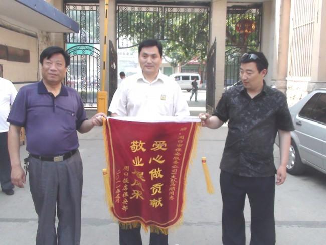 以上兩位同志因工作措施得力,及時(shí)消除安全隱患,為撲救險(xiǎn)情贏得了時(shí)間,減少了飯店損失,樹(shù)立了保安員典型。周口飯店保衛(wèi)部對(duì)保安員馬順、孫偉兩位同志予以通報(bào)表?yè)P(yáng)并向保安公司送來(lái)錦旗致謝。
