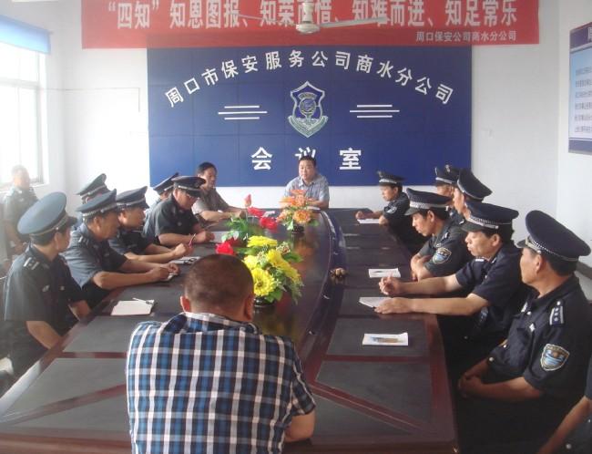 商水保安分公司書記黨來穩(wěn)同志主持會議,經理楊書杰同志作動員報告,組織全體人員進行學習討論。大家一致認為開展“四知”教育活動是總公司的號召安排,必須認真開展。為了保證學習質量,提高學習的自覺性,分公司領導為每位同志提供一切便利條件,要求每位同志要認真學習,牢記“四知”教育內容,寫好心得筆記,每人不少于10篇心得體會。唱好兩首歌,把握主旋律、發(fā)揮主動性、做好主人事、念好公司經。