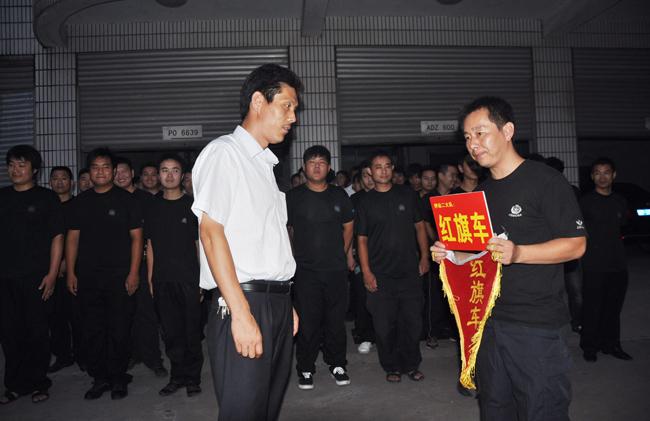 押運(yùn)二大隊(duì)負(fù)責(zé)人郭偉主動(dòng)與中行保衛(wèi)科李團(tuán)國(guó)主任聯(lián)系,積極溝通,共同開(kāi)展 “優(yōu)秀車組”和“紅旗駕駛員”評(píng)選活動(dòng),全體人員積極行動(dòng),人人參與,比團(tuán)結(jié)協(xié)作,比安全準(zhǔn)時(shí),比文明駕駛,比優(yōu)質(zhì)服務(wù),比車輛衛(wèi)生。大隊(duì)領(lǐng)導(dǎo)通過(guò)對(duì)車長(zhǎng)、隊(duì)員的觀察了解,組織隊(duì)員對(duì)駕駛技術(shù)過(guò)硬、行車安全無(wú)事故的駕駛員投票選評(píng),每季度評(píng)選出“紅旗駕駛員”一名,對(duì)評(píng)選出的先進(jìn)車組給予表彰,車輛懸掛“流動(dòng)紅旗”,并給予優(yōu)秀駕駛員300元現(xiàn)金獎(jiǎng)勵(lì)。通過(guò)綜合測(cè)評(píng)及民主投票,押運(yùn)二大隊(duì)駕駛員崔丹榮獲本季度優(yōu)秀駕駛員。18日晚,在押運(yùn)二大隊(duì)召開(kāi)的全體會(huì)議上,中行保衛(wèi)科李團(tuán)國(guó)主任親自向崔丹同志送上一面印有“紅旗車”的流動(dòng)錦旗,并表達(dá)了祝賀之情。