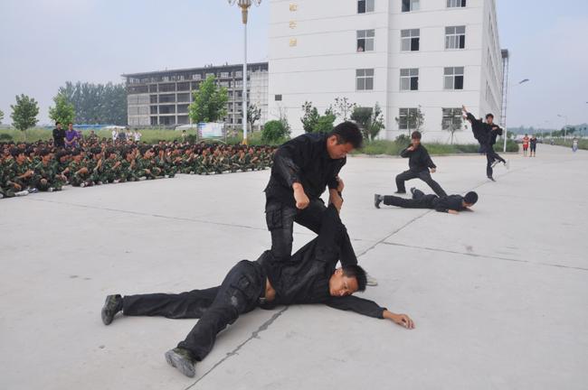 匯操表演大會上,公司培訓(xùn)教官首先進(jìn)行了擒敵拳、武術(shù)、實(shí)戰(zhàn)擒拿等表演,贏得了全體師生的一致喝彩。隨后,參訓(xùn)學(xué)生在培訓(xùn)教官的指揮帶領(lǐng)下,進(jìn)行了隊(duì)列隊(duì)形轉(zhuǎn)換、軍事動(dòng)作演練等訓(xùn)練內(nèi)容,他們精彩的匯報(bào)演出,不時(shí)贏得了陣陣掌聲,得到了與會領(lǐng)導(dǎo)的一致認(rèn)可和贊揚(yáng)!