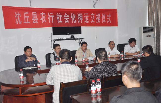 周口市保安服務(wù)公司押運(yùn)經(jīng)理秦平柱、周口市農(nóng)行保衛(wèi)部經(jīng)理王東升、沈丘縣支行黨委副書記白立俊等領(lǐng)導(dǎo)就沈丘縣農(nóng)行社會(huì)化守押交接工作進(jìn)行了溝通交流,并就雙方職責(zé)和義務(wù)達(dá)成一致協(xié)議。