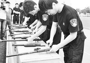 公司保安員進行槍支分解考試評比
