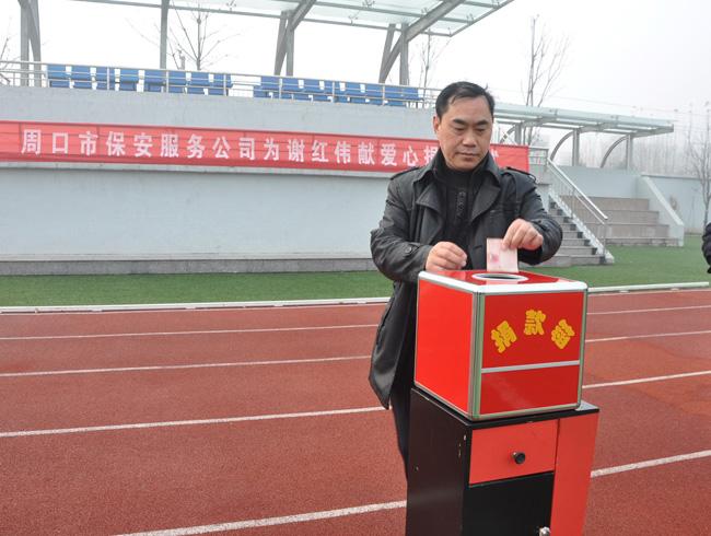 在捐款儀式上,公司黨總支書記鄭明山介紹了保安員謝紅偉在身患重病的情況下堅守工作崗位的先進事跡和自強不息的可貴品質,同時號召公司全體員工發(fā)揚以人為本、團結互助的優(yōu)良作風,伸出友愛之手,積極捐款,奉獻愛心。隨后,參加捐款儀式的全體人員紛紛慷慨解囊,奉獻愛心。