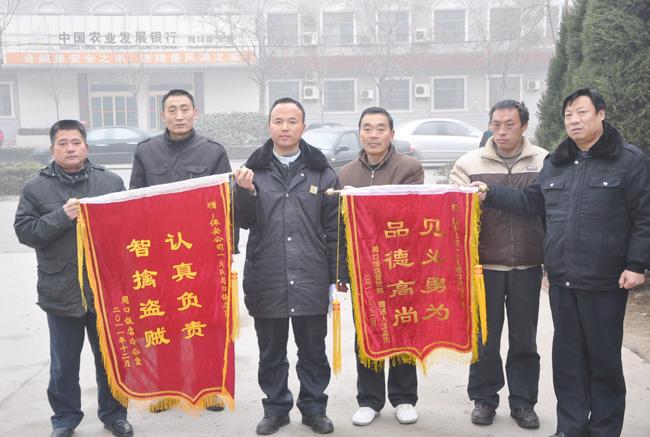 12月29日上午9時,周口飯店保衛(wèi)部張經(jīng)理帶著印有“認真負責、智擒盜賊”和“見義勇為、道德高尚”的二面錦旗和一封感謝信來到周口市保安服務(wù)公司,講述了保安公司保安隊員勇擒盜賊的先進事跡,并對保安公司培養(yǎng)出這么優(yōu)秀的保安隊員表示感謝。