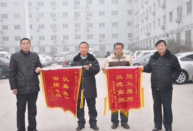原來,12月13日晚20:30分左右,保安公司駐周口飯店保安員在對停車場進行例行巡檢時,發(fā)現(xiàn)有二個陌生男子在停車場走動,行跡十分可疑,當兩名可疑男子推兩輛電動車準備離開時,保安員王新廣和另外兩名保安員王勝利、田紅杰迅速將兩個陌生男子攔下,在詳細詢問過程中,一名可疑人見事不妙立即逃跑,三人見狀,將另一名可疑人員控制,同時報告值班經(jīng)理,后在內(nèi)保人員的積極配合下,將可疑人移交到七一路派出所。后經(jīng)派出所核實,二人均為盜竅慣偷。