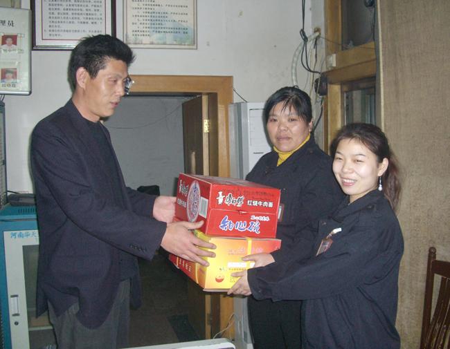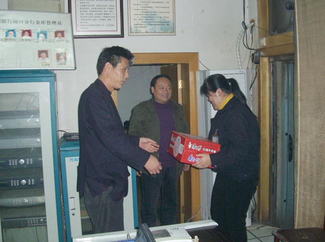 2011年12月30日下午5時,中國銀行周口市支行保衛(wèi)部經(jīng)理李團國在中行辦公室等相關部門負責人的陪同下,專程來到保安公司押運二大隊,向元旦假日堅守崗位的守押隊員表示慰問,并送上慰問品和假日祝福。