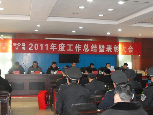 2012年3月8日上午,保安公司鄲城分公司在農(nóng)行四樓會議室組織召開2011年度總結表彰大會。周口市保安總公司黨總支書記鄭明山、鄲城縣公安局治安大隊大隊長梁紅巖、鄲城縣公安局治安大隊中隊長牛兵、鄲城縣保安分公司經(jīng)理宋祥靈、鄲城縣保安分公司經(jīng)理助理楊傳斌、鄲城縣保安分公司辦公室主任錢忠郎及鄲城縣保安公司押運、技防、人防60余人參加了表彰大會。會議由鄲城縣保安分公司辦公室主任錢忠郎主持。