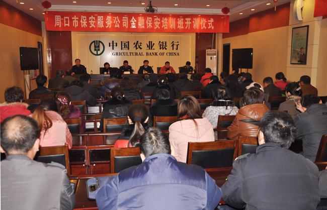 3月9日上午,保安公司在市農(nóng)行二樓會(huì)議室隆重舉行2012年度金融保安培訓(xùn)開(kāi)訓(xùn)儀式,市公安局治安支隊(duì)內(nèi)保大隊(duì)許劍波、市農(nóng)行副行長(zhǎng)張志民、保安公司黨總支書(shū)記鄭明山、人防經(jīng)理任萍、培訓(xùn)學(xué)校校長(zhǎng)蔣子華及周口農(nóng)行各縣(市)支行保衛(wèi)部門(mén)負(fù)責(zé)人、新招聘保安員 170余人參加了開(kāi)訓(xùn)儀式。