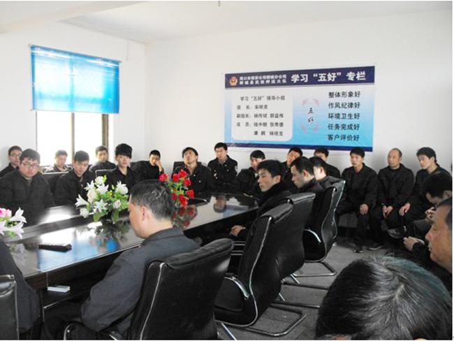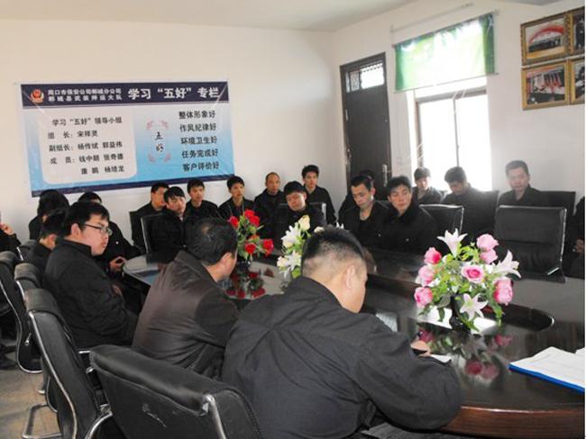 為貫徹落實周口市保安總公司關(guān)于學(xué)習(xí)“五好”活動的通知精神,鄲城保安分公司成立了以經(jīng)理宋祥靈同志任組長,郭益?zhèn)?、楊傳斌任副組長,康鵬、張奇德、楊培龍、錢忠朗為成員的領(lǐng)導(dǎo)小組,于2012年3月26日9時在大隊會議室開展了落實學(xué)習(xí)“五好”活動動員大會。鄲城保安分公司經(jīng)理宋祥靈對此次學(xué)習(xí)落實“五好”活動提出了具體要求,著重講述了此次活動的目地和重要意義,要求全體保安人員在以后的工作中,嚴格要求自己,爭先創(chuàng)優(yōu)。