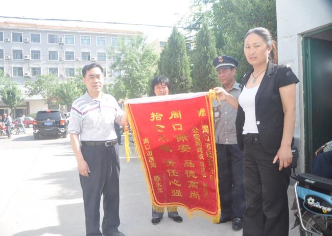 今年4月4日晚,公司保安員蔣夢軍和韓運(yùn)平在夜間巡邏時(shí),發(fā)現(xiàn)一輛愛瑪牌電動(dòng)三輪車丟棄在路邊,兩人把車子推到市公安局車棚內(nèi)暫時(shí)保存,并積極與公司人防中心匯報(bào)聯(lián)系尋找失主。經(jīng)過公司與周口電視臺聯(lián)系,此事在5月14日晚周口電視臺民生報(bào)道欄目播出后,失主通過電視宣傳報(bào)道,終于找到了失而復(fù)得的三輪車。