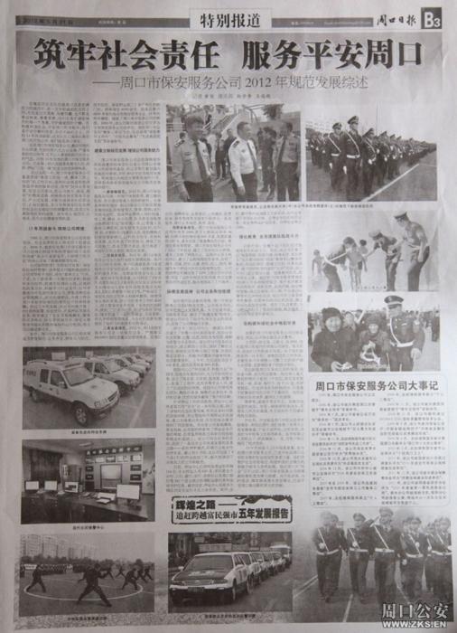 《周口日?qǐng)?bào)》專版刊發(fā)保安公司特別報(bào)道《筑牢社會(huì)責(zé)任 服務(wù)平安周口》