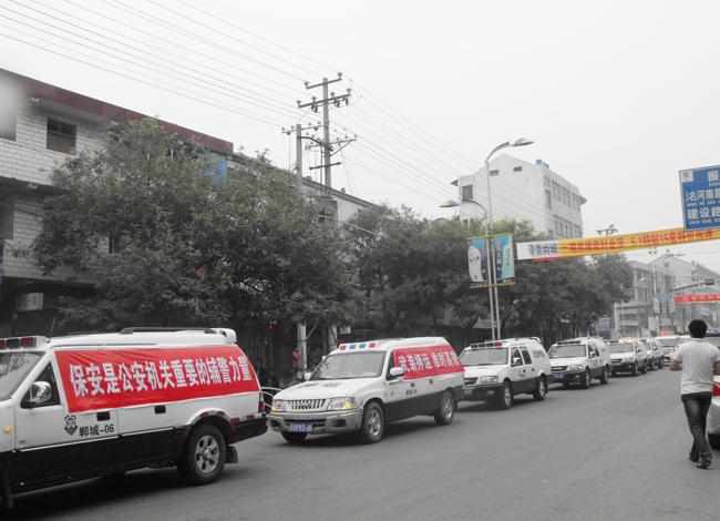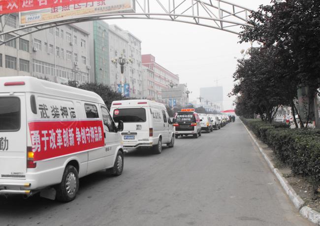 儀式結束后,鄲城押運大隊組織押運隊員和押運車輛圍繞中心城區(qū)進行宣傳活動,并且進行了押運隊員分列式和擒敵拳表演,押運隊員過硬的技能和嫻熟的業(yè)務贏得了現(xiàn)場人員的贊許和認可。
