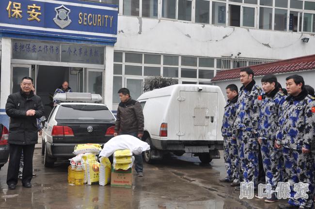 在新春佳節(jié)即將到來之際,為了使廣大職工過個祥和愉快的春節(jié),充分體現(xiàn)周口市保安服務(wù)公司人文關(guān)懷和保安大家庭的溫暖,自2013年2月05日起,公司總支書記鄭明山、工會主席張瑞紅、辦公室主任耿學(xué)爭等人,對公司15名困難隊員家庭進(jìn)行走訪慰問,并向困難職工送上慰問金及豐富的年貨。