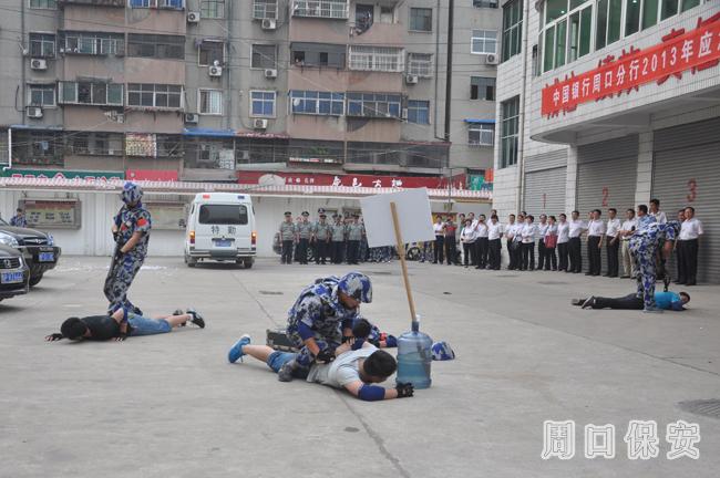 為確保金融押運(yùn)安全,提高銀行防火防災(zāi)能力,確保金融安全防范風(fēng)險(xiǎn)的能力,2013年6月6日下午18時(shí),在中國(guó)銀行院內(nèi),周口市保安服務(wù)公司與中國(guó)銀行聯(lián)合組織了一場(chǎng)押運(yùn)安全應(yīng)急預(yù)案演練。中國(guó)銀行王書記、保衛(wèi)部李經(jīng)理、建行保衛(wèi)部高經(jīng)理、各分行行長(zhǎng)及保衛(wèi)部經(jīng)理,周口市保安服務(wù)公司押運(yùn)經(jīng)理秦平柱、副經(jīng)理郭偉、辦公室主任耿學(xué)爭(zhēng)參與了整個(gè)演練過程。