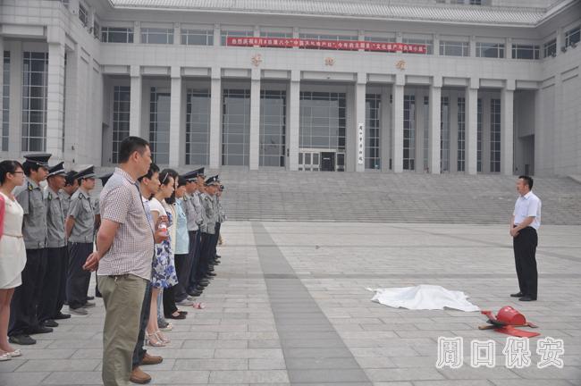 為較好地做好周口市博物館防火防災(zāi)預(yù)防工作,提高保安員與職工的防火意識(shí)及能力,2013年6月6日17時(shí),周口保安服務(wù)公司五大隊(duì)駐周口市博物館保安員與職工聯(lián)合組織了一場(chǎng)防火演練。文化局李局長、韓局長及博物館周館長、李館長、穆館長、周口市保安服務(wù)公司辦公室主任耿學(xué)爭、等參加了演練。