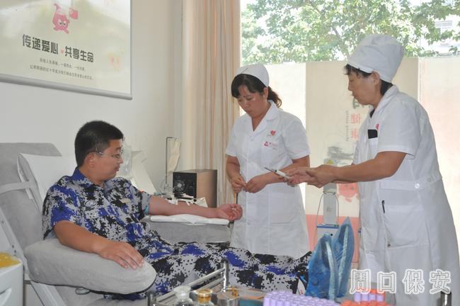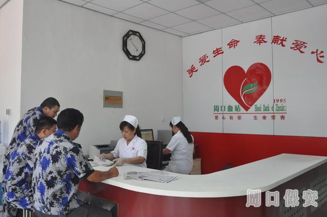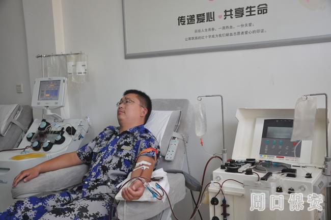 2013年7月16日上午10時(shí)許,周口市保安服務(wù)公司扶溝押運(yùn)大隊(duì)陳陸軍、于海濤、翟俊超三人來到周口市中心血站,每人無償捐獻(xiàn)血小板4個(gè)機(jī)采單位。