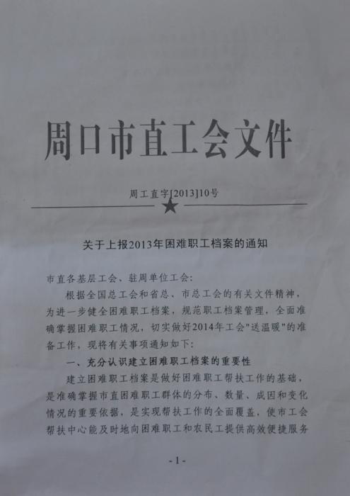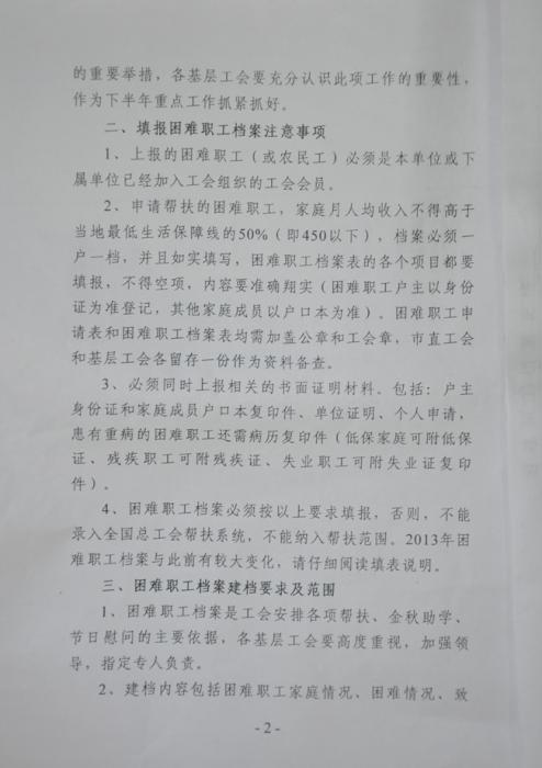 關(guān)于上報(bào)2013年困難職工檔案的通知